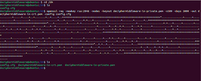 openssl req -newkey rsa:2048 -nodes -keyout deciphermiddleware-in-private.pem -x509 -days 3000 -out deciphermiddleware-in-crt.pem -config config.cfg