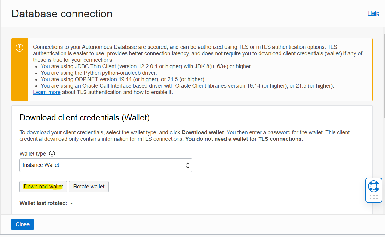 2. Click on the database connection. Then click on Download wallet.