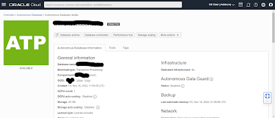 1. Log in to the oracle cloud instance and navigate to the autonomous database instance.