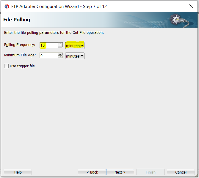 8. Specify the polling frequency and click Next. Click on Finish to complete the adapter configuration.