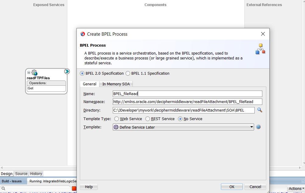 12. Click OK. Save and deploy the code on the Weblogic server.