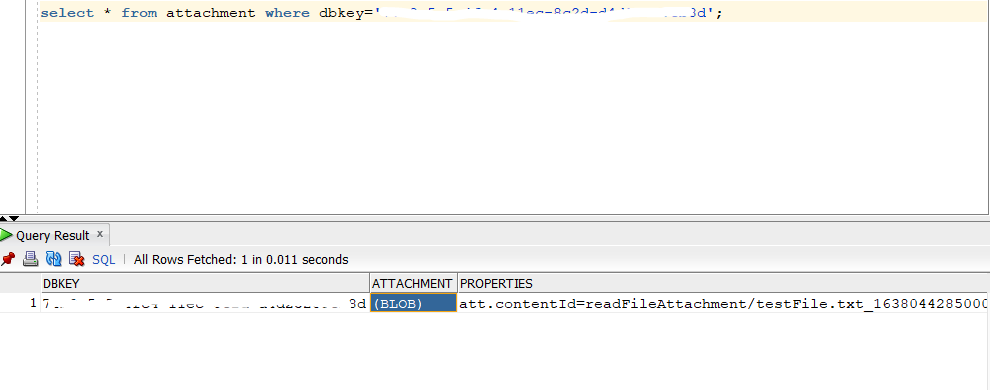 4. To query the file data and file attributes, connect to the SOA-INFRA database of the SOA instance.
