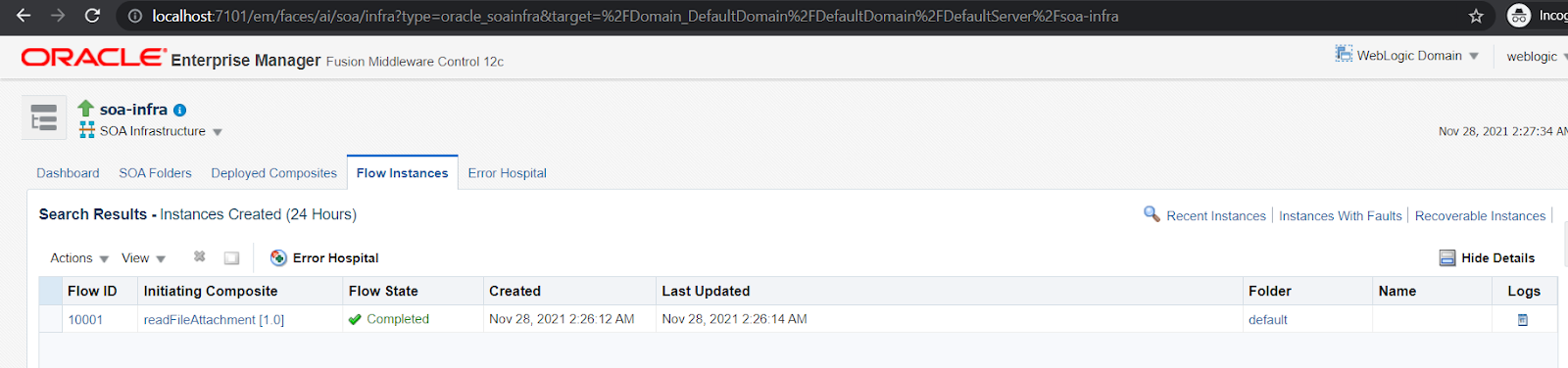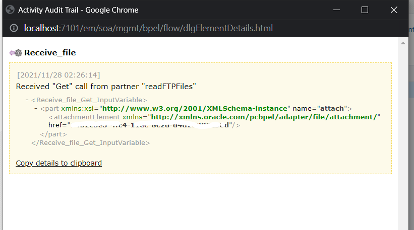 To understand better, let’s take an example of flow which polls the FTP directory every 10 minutes and read as an attachment. Then, how we can find the payload from SOA-INFRA tables.