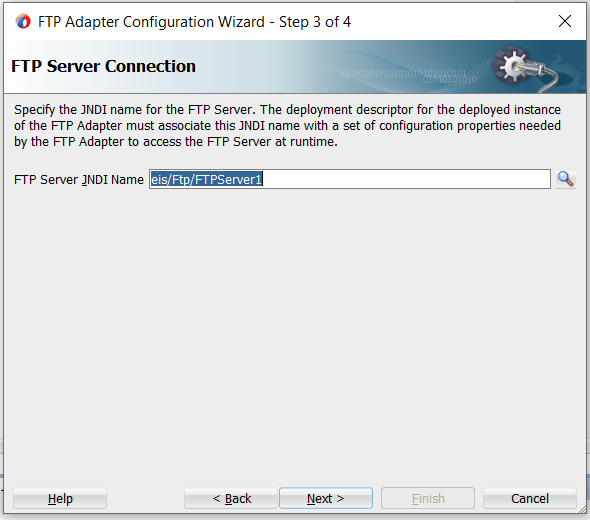 2. Drag and drop FTP adapter from component pallet. Enter the service name. Click Next.