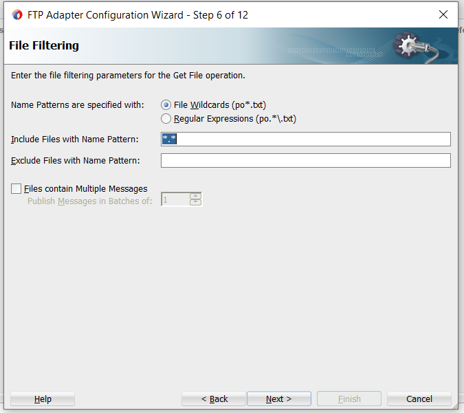 7. Provide the file name pattern or regex file name pattern and click Next.