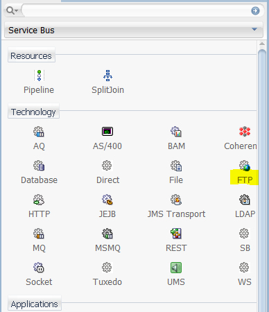 1. Open “servicebus.sboverview” and drag FTP adapter from components palette to proxy services side.