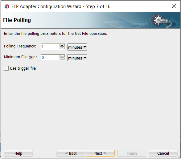 8. Specify the polling frequency(Here we have kept 1 minute or 60 seconds. The adapter will check every 60 seconds if there is any file available) and click on Next.