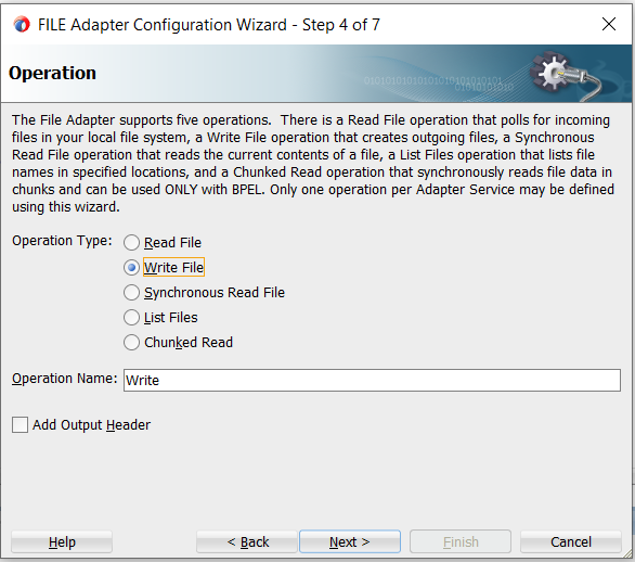 17. Select the Write File as operation type. Click on Next