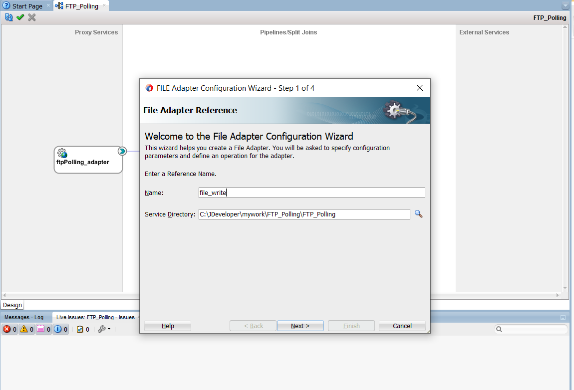 14. Drag file adapter from components palette. Enter the adapter name and click Next.