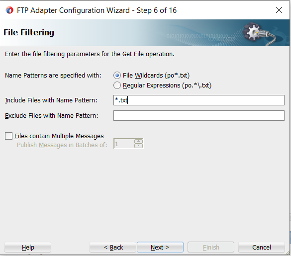 7. Specify the file pattern and click on Next.