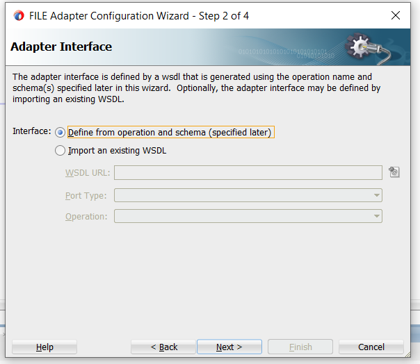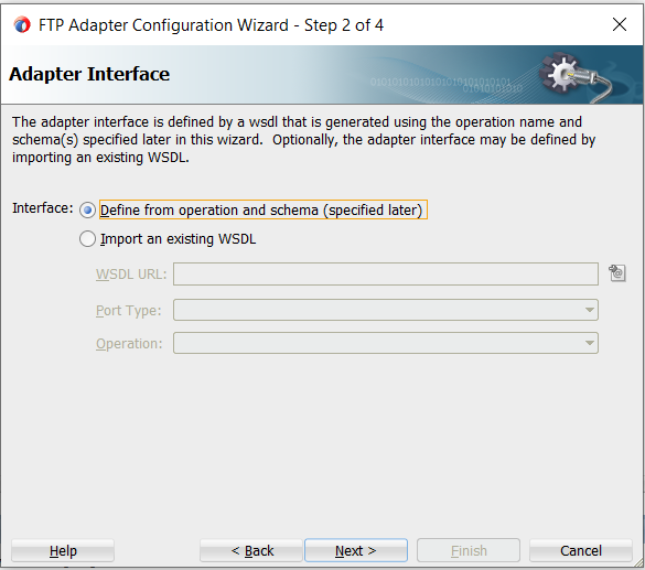 15. Select Define from operation and schema (specified later). Click on Next.