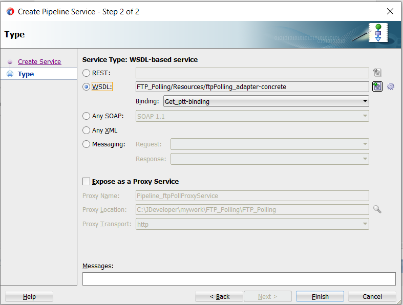 12. Uncheck the “Expose as proxy service”. Select the concrete wsdl(i.e. containing ports and bindings), which got created while creating the FTP adapter.