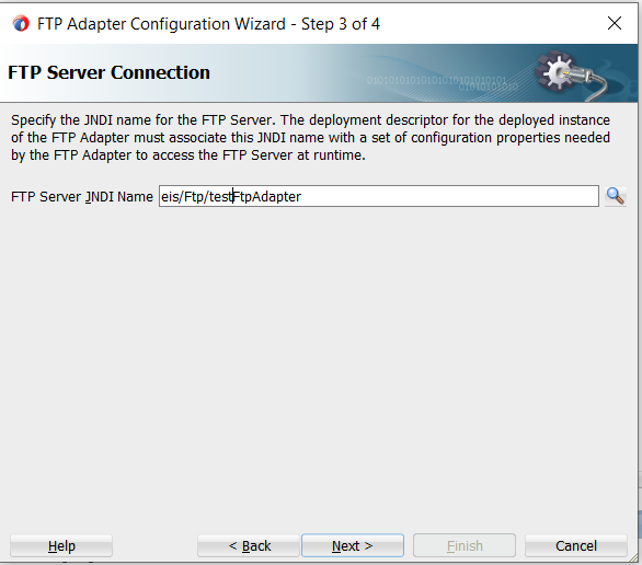 4. Specify the JNDI of the connection factory(e.g. eis/Ftp/testFtpAdapter) for the remote SFTP server, from which we want to poll the files. Click on Next.