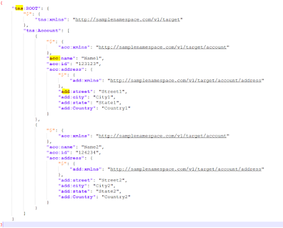 <tns:Account acc:xmlns="http://samplenamespace.com/v1/target/account">