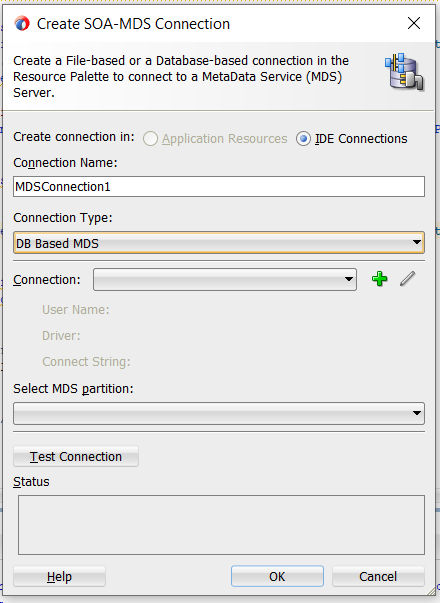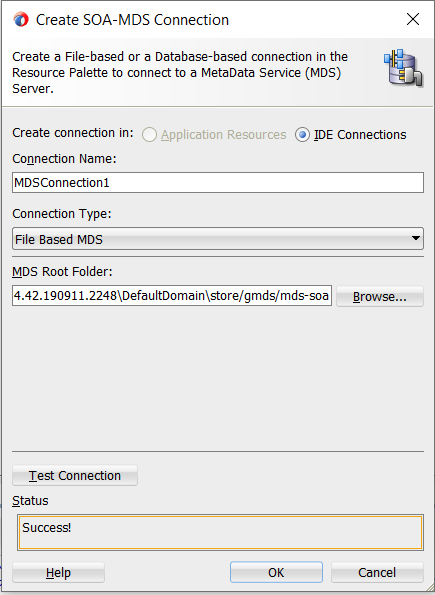 - Establishing the connection to SOA-MDS in Jdeveloper.