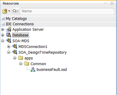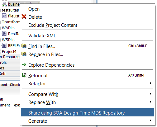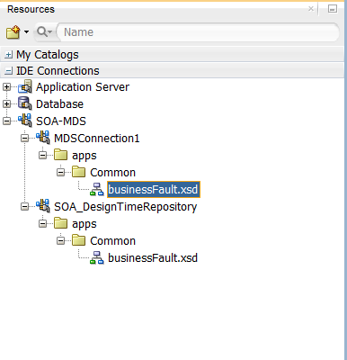- To do so, right-click on businessFault.xsd and click on Share using SOA Design-Time MDS Repository.