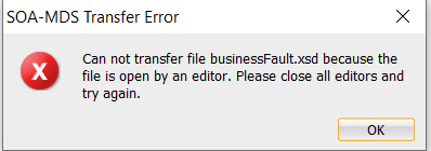 - Make sure, that file is not opened in Jdeveloper else you will get the below error.