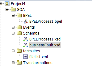 Let’s assume, we created a businessFault.xsd which will be used by various SOA composites or projects.