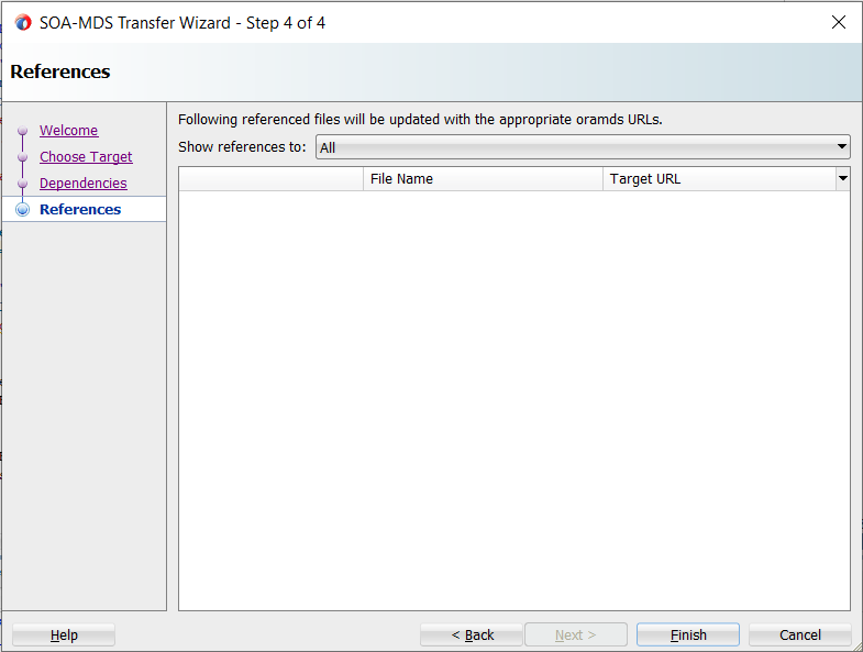 - The file will be copied to the target MDS location i.e. SOA-MDS location. The file will be on the SOA server.