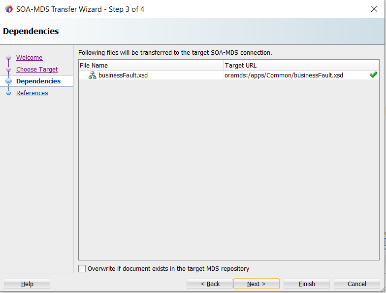 - If the document exists with the same name and we want to overwrite, then check the Overwrite if document exists in the target MDS repository. Click Next