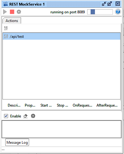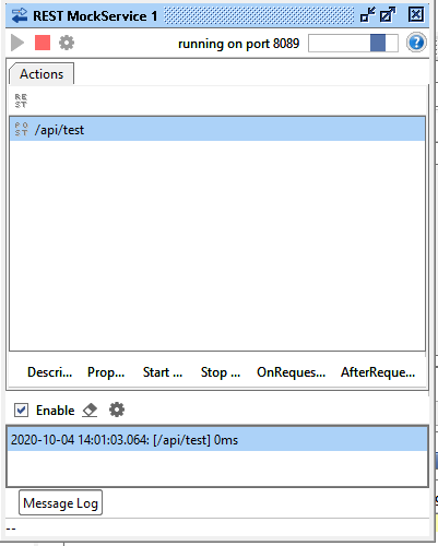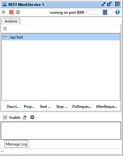 5. A window will open showing that mock service **GET _/api/test _**has been started at port 8089.