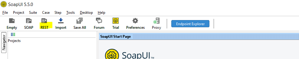 1. Open SOAP UI and click on REST to create a New REST Project.