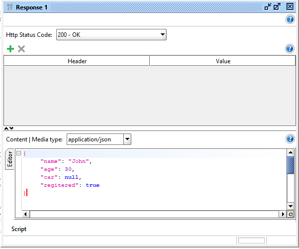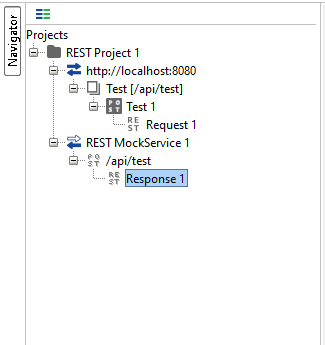 7. Mock response is specified as Response1 which was automatically created. Double click Response 1 from this window or navigator window.