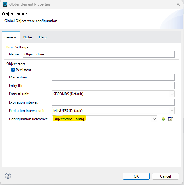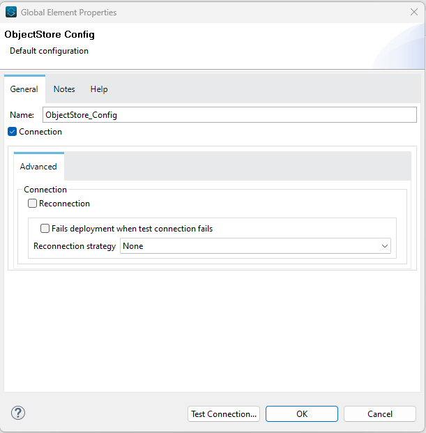 8. Specify the connection reference for ObjectStore created in the previous step. Click OK.