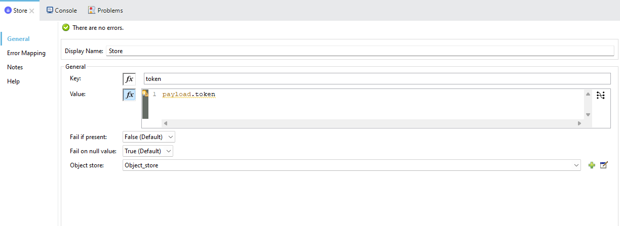10. Drag and drop the Store connector from the Mule Palette. Specify the details as mentioned in the below screenshot.