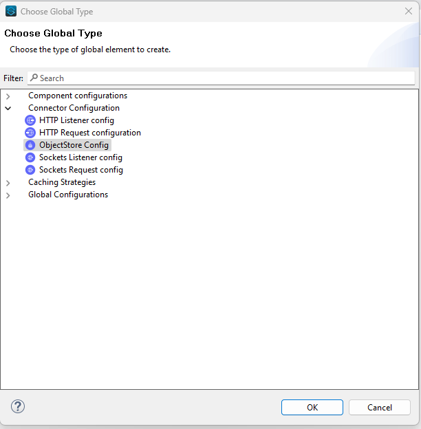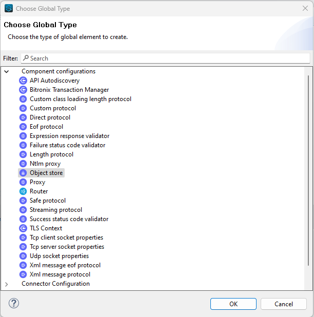 5. Select ObjectStore Config under Connector configurations. Click on OK.