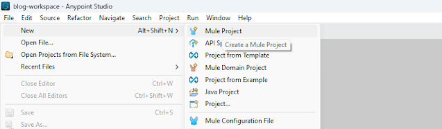 2. Open AnyPoint Studio. Click on file, then New and then Click on Mule Project.