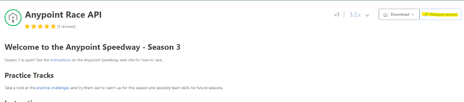 1. Go to Anypoint Race API, and Click on Request Access. Log in with AnyPoint Platform credentials.